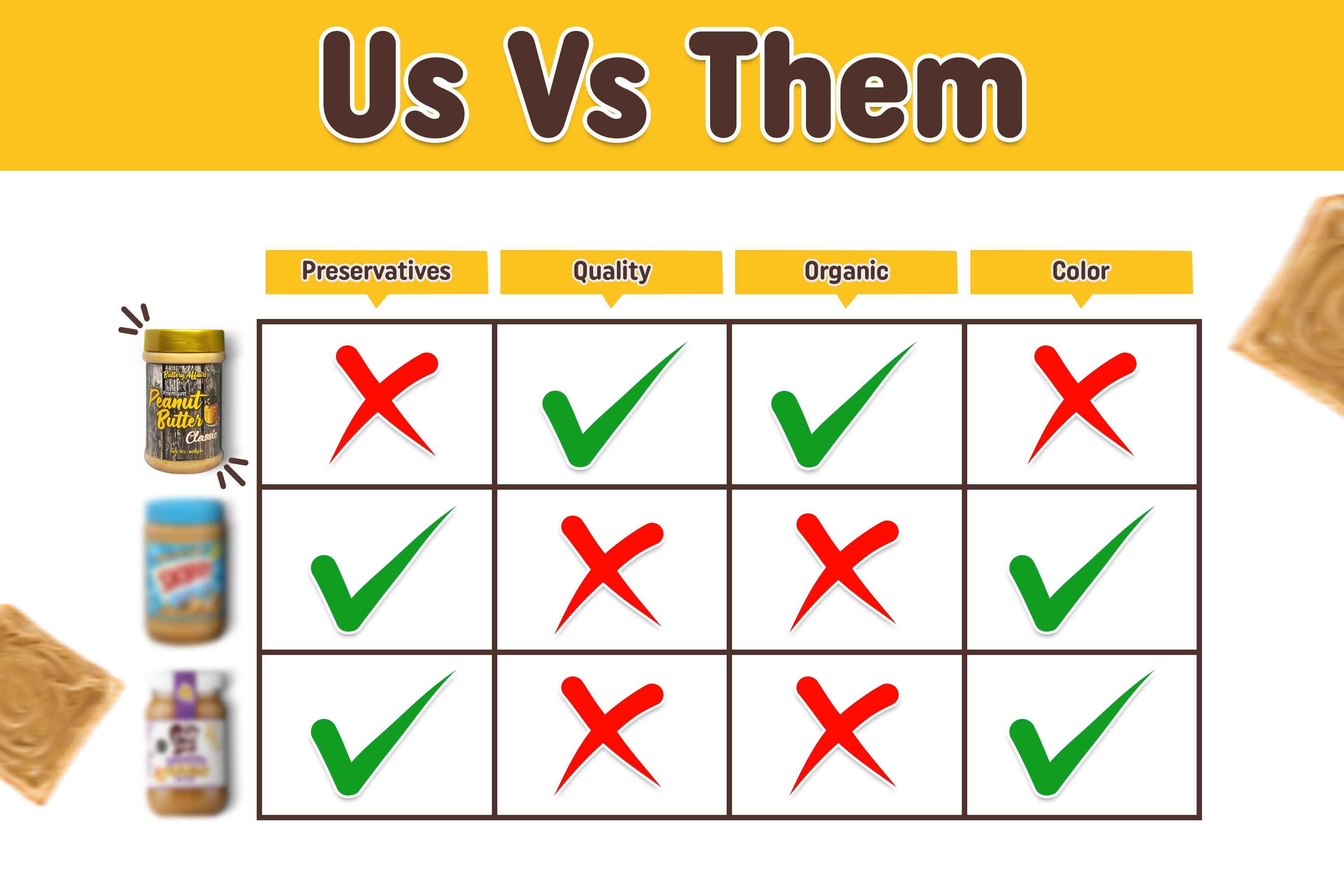 Our peanut butter is a perfect balance, but not as crunchy as traditional peanut butter either. It's the best of both worlds!